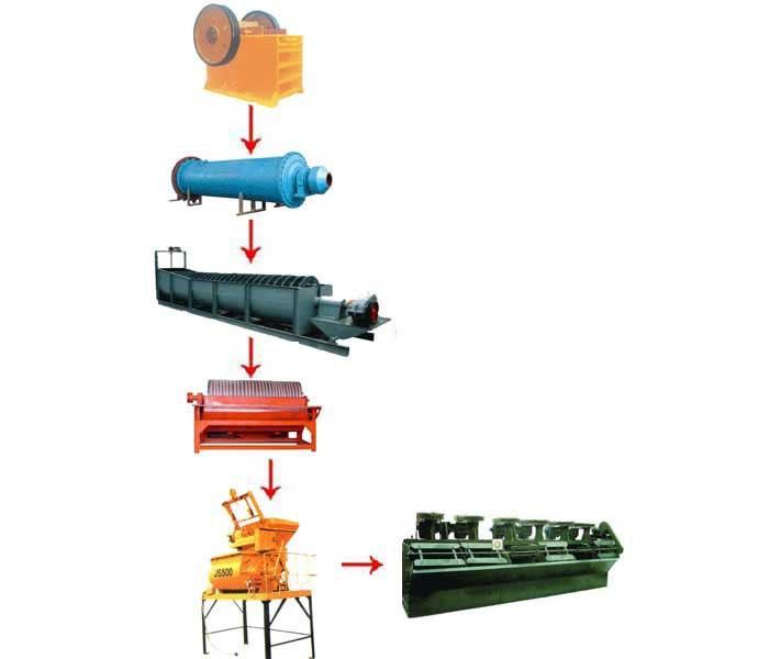 硫化銅鎳礦石的選礦方法,主要的是浮選,而磁選和重選通常為輔助選礦方法。浮選硫化銅鎳礦石時,常采用浮選硫化銅礦物的捕收劑和起泡劑。確定浮選流程的一個基本原則是,寧可使銅進入鎳精礦,而盡可能避免鎳進入銅精礦。因為銅精礦中的鎳在冶煉過程中損失大,而鎳精礦中的銅可以得到較完全的回收。銅鎳礦石浮選具有下列四種基本流程。直接用優先浮選或部分優先浮選流程:當礦石中含銅比含鎳量高得多時,可采用這種流程,把銅選成單獨精礦。該流程的優點是,可直接獲得含鎳較低的銅精礦。